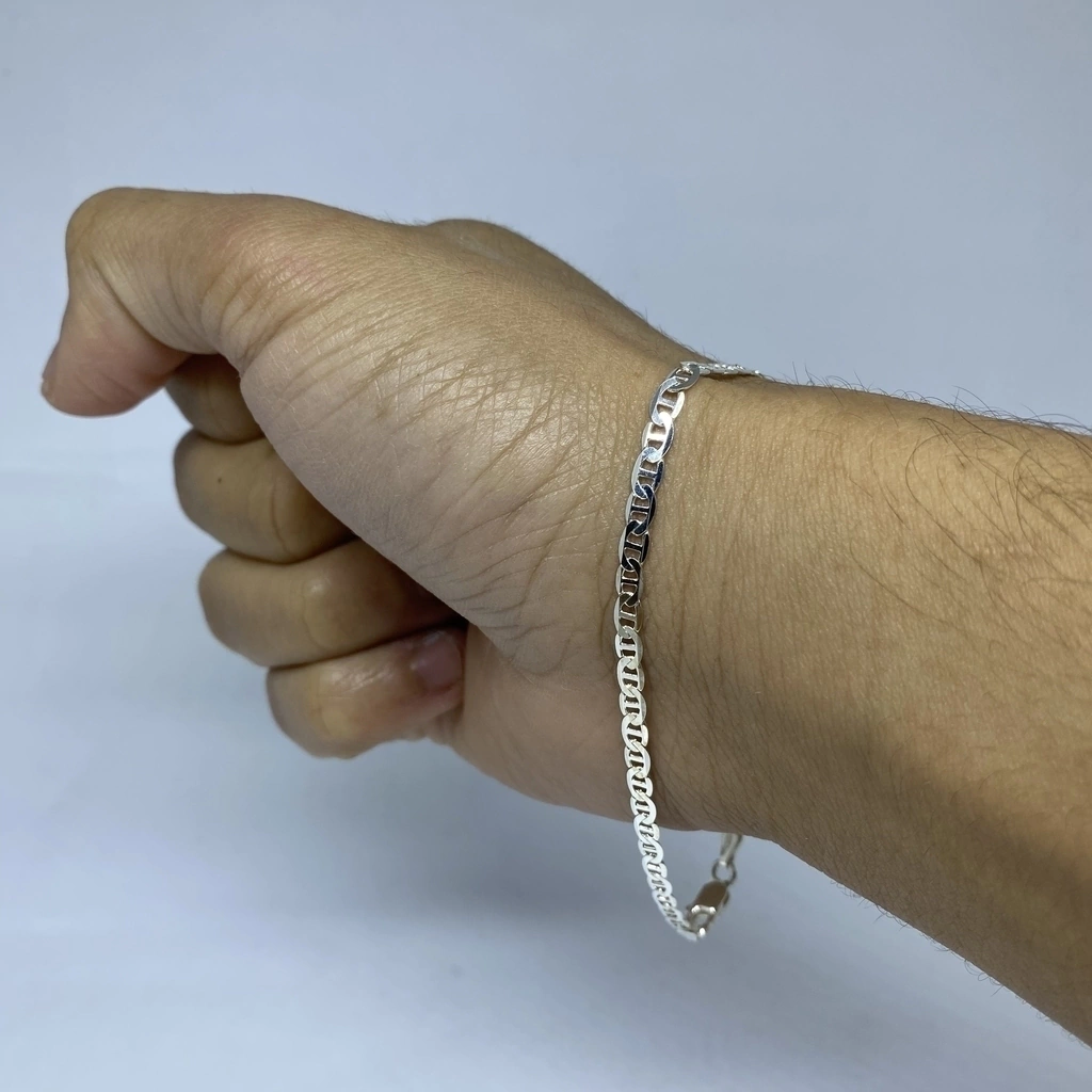 Pulseira elo Flat produzida em prata legítima sob padrão de qualidade e produção italiana.